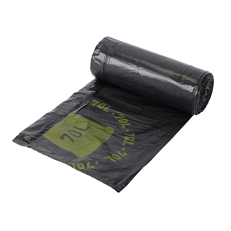 20 sacs poubelle à poignées coulissantes noirs 70 L