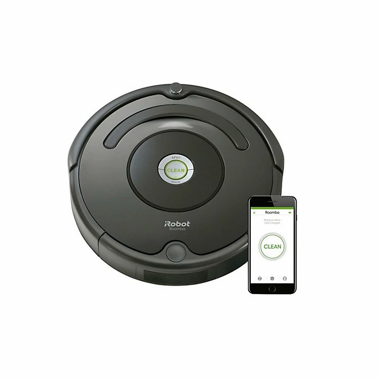 - Fourni avec Aspirateur robot Roomba® 697, Base de chargement Home Base, Câble d’alimentation